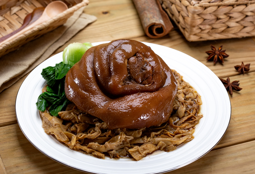 蹄膀、轎篙筍經滷煮上色,搭配獨特的醬汁,視覺與嗅覺的饗宴,適合適合過年佳節享用。